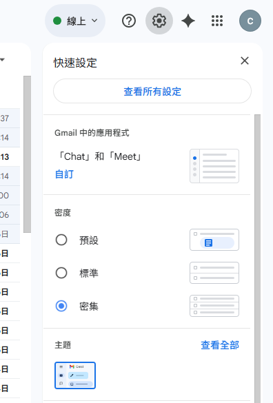 2.在最上方搜尋欄位,點擊 右上方的「齒輪」