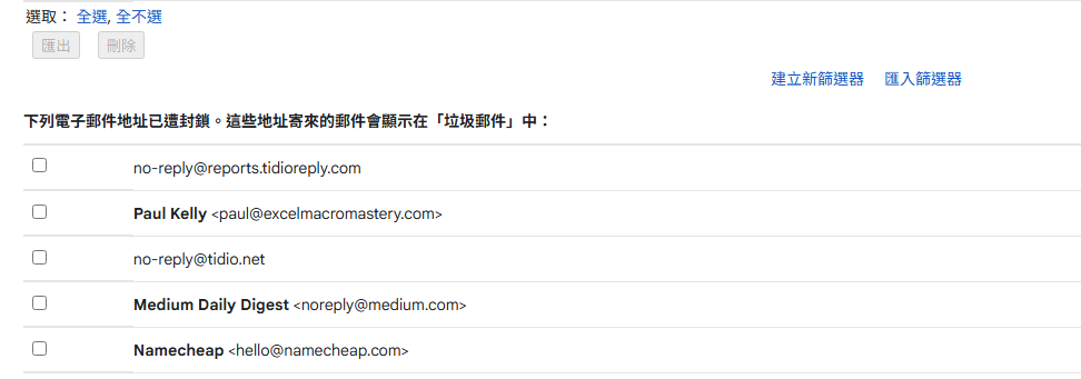 👉 只要設定 Gmail 的「過濾器」,就能自動封鎖這類信件,甚至直接刪除或標示為垃圾郵件。