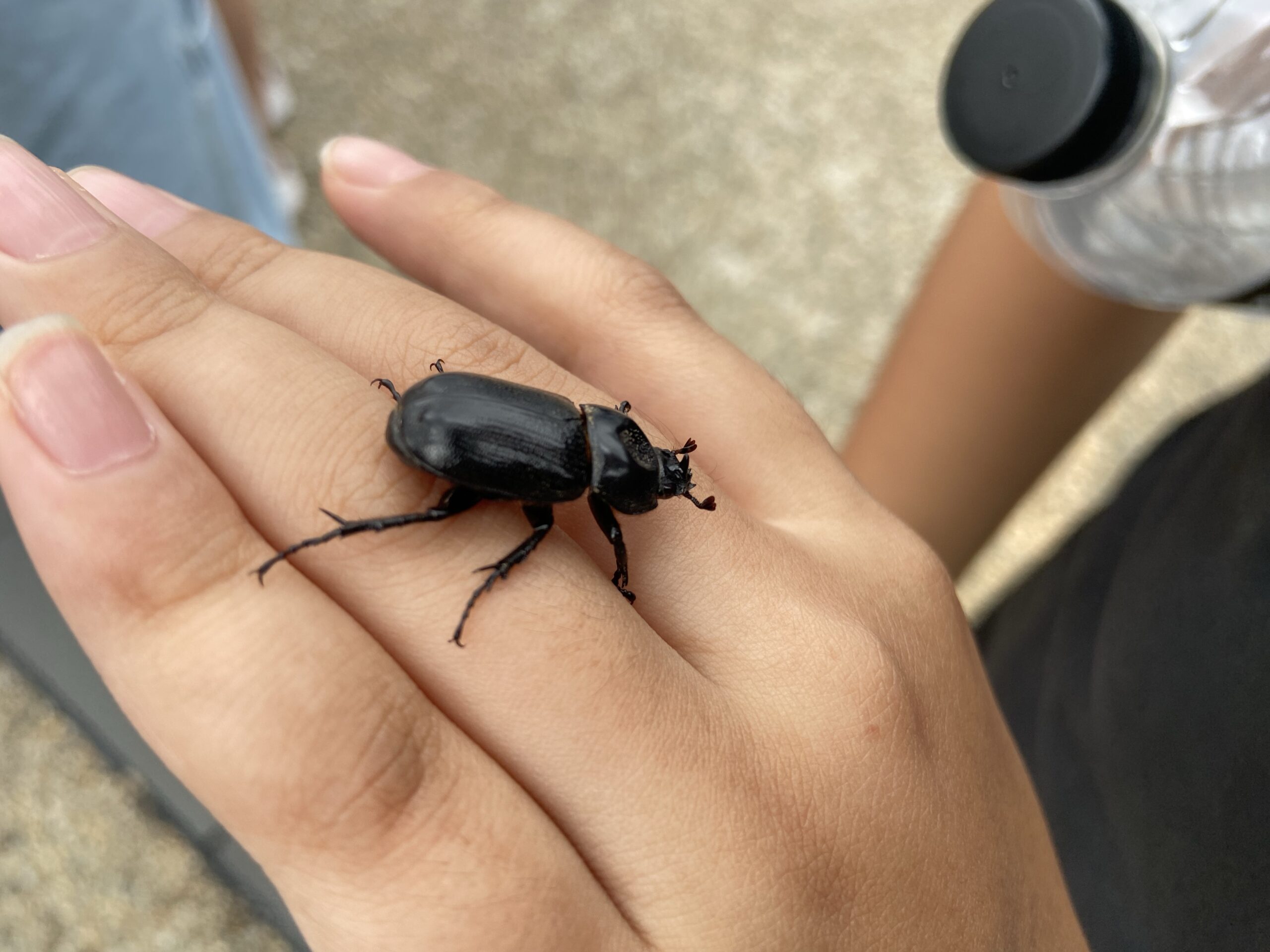 微獨角仙 (華扁犀金龜)cmeboss2023 年 5 月 27 日寵物養殖 瀏覽人數: 5 今天在雞舍發現一隻小嬌客,科普了一下,牠是「微獨角仙」(金龜子科)體長21-25mm,體色黑色至黑褐色具光澤,頭小,前胸背板寬大,體胖,雄蟲頭部前端有一枚直立的小觭角,前胸背板中央具多邊型的凹陷,雌蟲頭上不具觭角只有瘤突,前胸背板的凹陷也不明顯,翅鞘具刻點呈縱向的條紋排列,腹面黑色,後腳腿節粗大。本屬一種,本種又稱華扁犀金龜,分布於低中海拔山區,幼蟲以腐植質為食,成蟲取食樹液、腐果,外觀與習性近似獨角仙和小型的椰子犀角金龜。