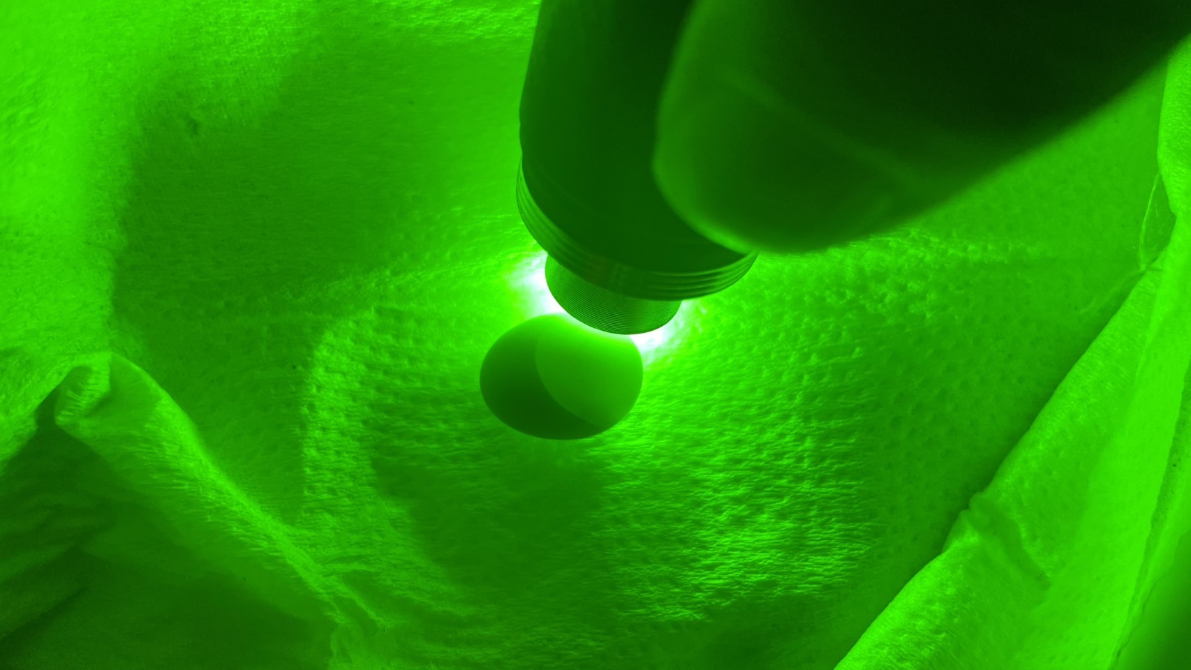 綠光可以清楚看到血管的呈現,所以你可以準備一隻綠光的雷射筆,將光源對準蛋殼即可觀察到蛋內狀態。