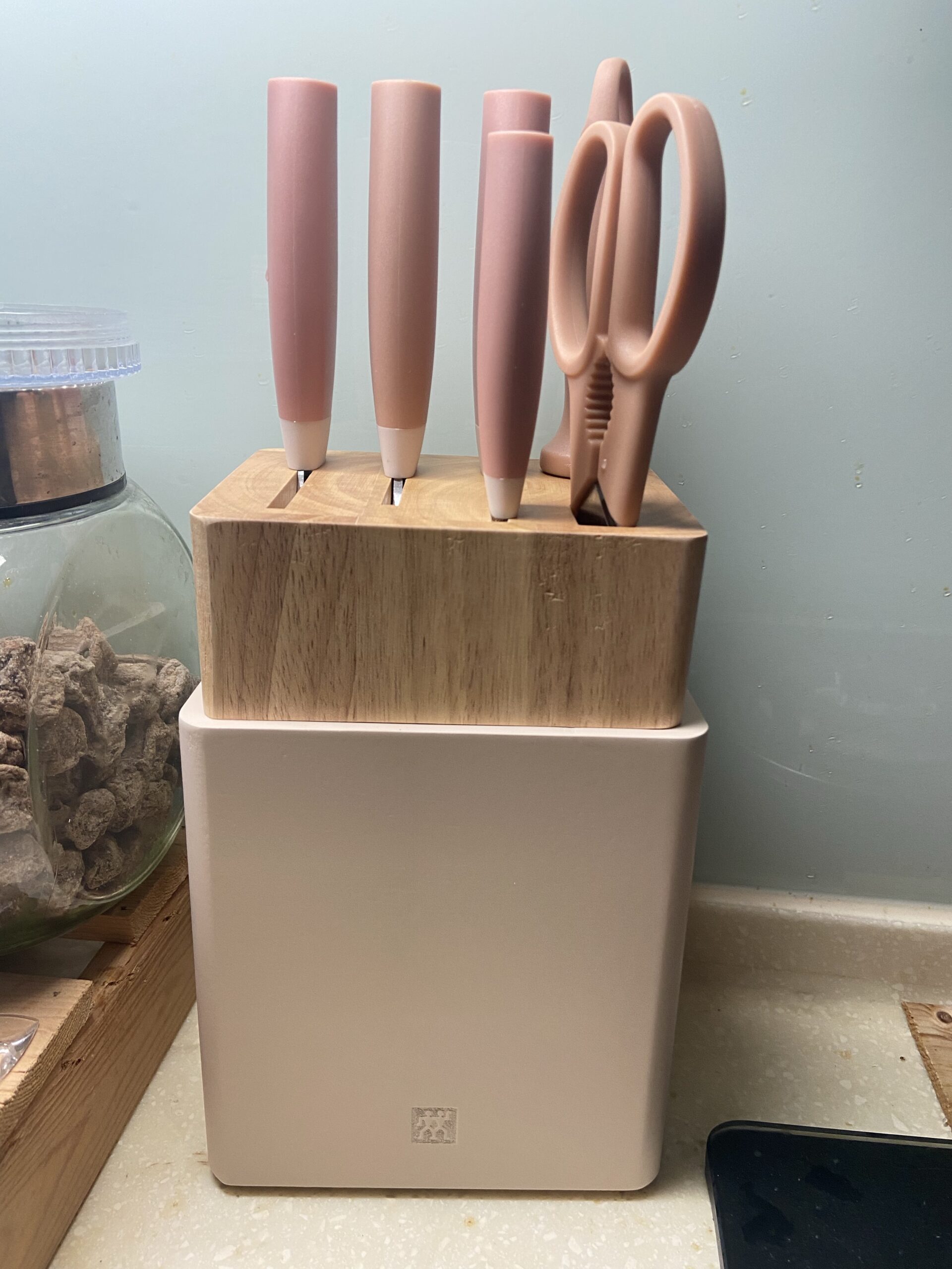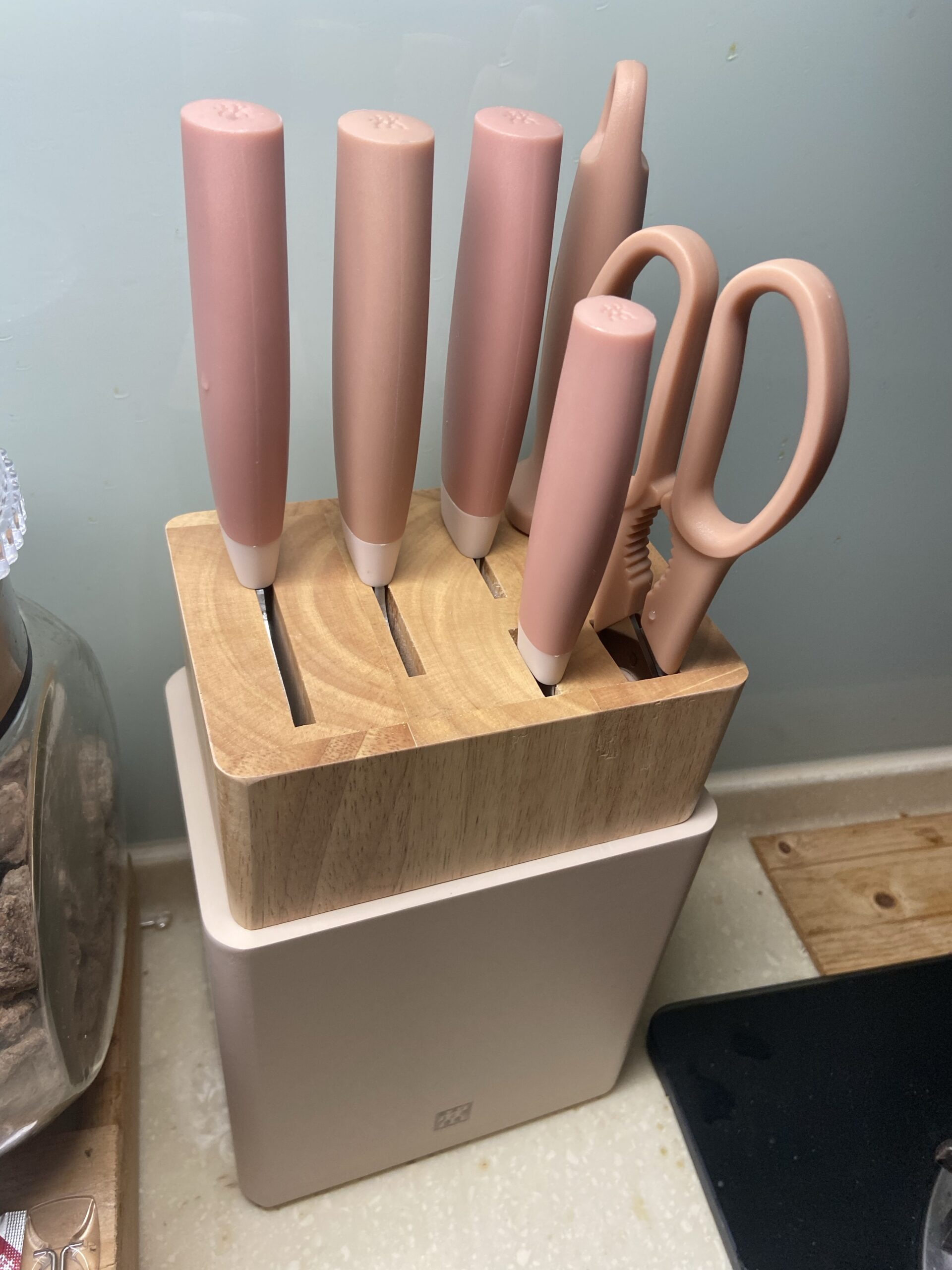 廚房必備刀具【ZWILLING 德國雙人】Now S七件式刀座組(蝦粉色)