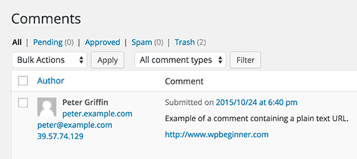 預設情況下,WordPress 評論功能允許您在評論中使用 HTML 元素。如果元素用於非常重要或緊急的內容,以粗體呈現內容,或將文本變為斜體。但很不幸的是,垃圾評論也喜歡使用 HTML 元素,尤其是超鏈接來宣傳他們網站,以提高他們的網頁排名,或者在最壞的情況下,該鏈接可能會導致用戶訪問惡意網站,從而成為網路攻擊的受害者。